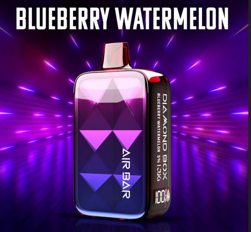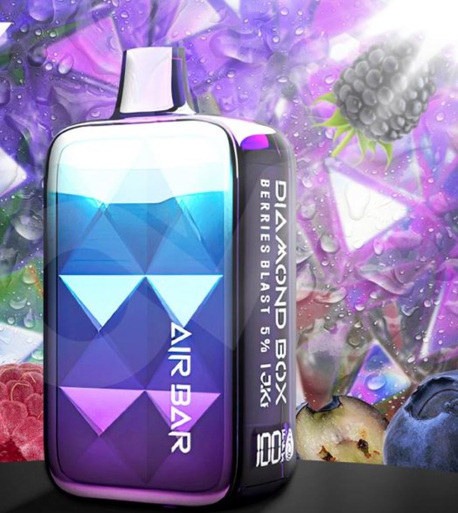 اير بار دايمند بوكس 20000 شفطة 20 نيكوتين - air bar diamond box 20000 puff مع شاشة OLED ذكية، وبطارية بقوة 800 مللي أمبير في الساعة، وسعة 25 مل.