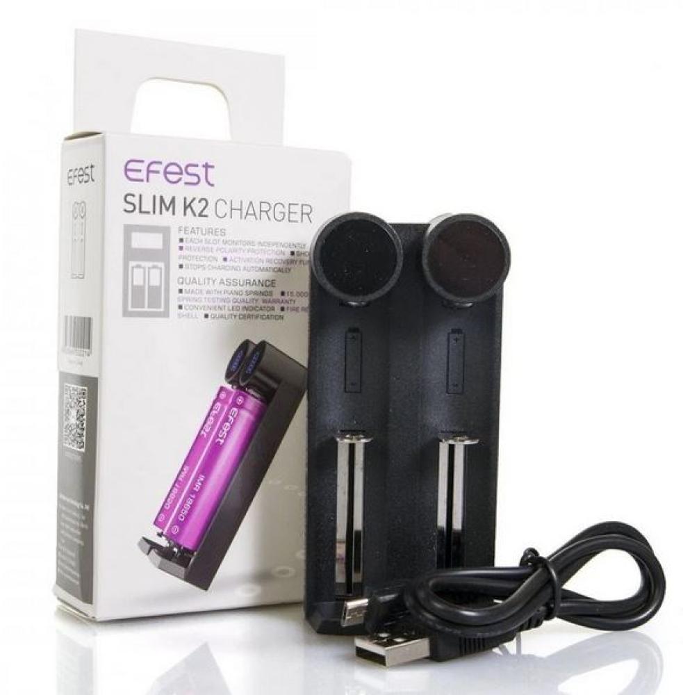 شاحن بطارية فيب ايفست - Efest Slim K2 Charger يشحن بطاريتين بقوة 1 امبير مع ميزة حماية من عكس أقطاب البطارية وحماية من اي شورت في البطارية بين الأقطاب