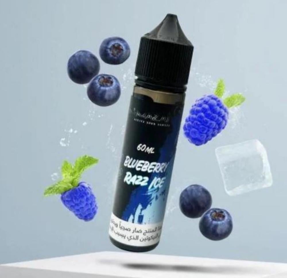 نكهة بلوبيري راز ايس مزاج فيب - Mazaj Blueberry Razz ice vape عصير حبات البلوراز الأزرق الصافي مع الثلج المجروش الذي يبرد الحلق.