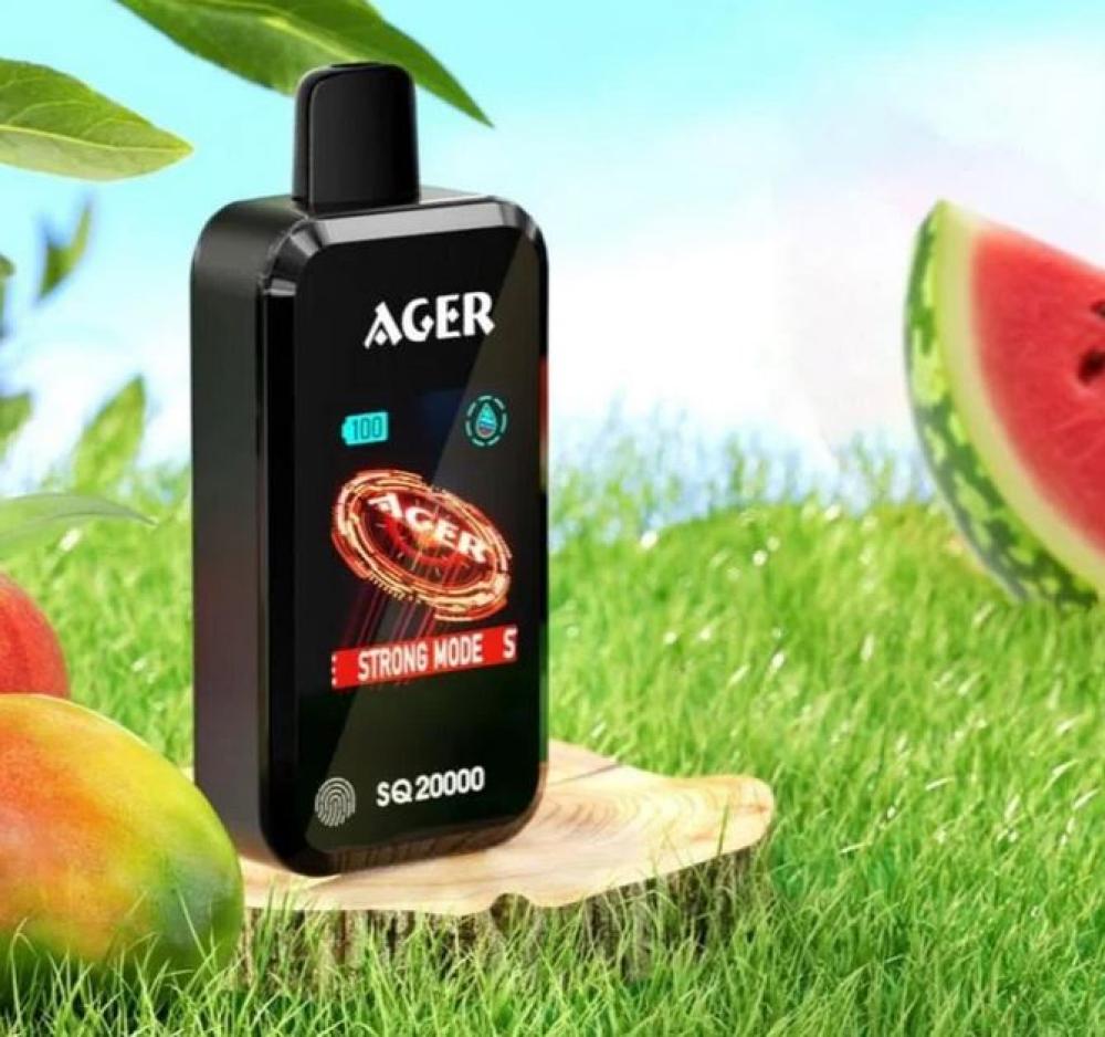 سحبة أجير 20000 شفطة - Ager 20000 Puff بسعة 24 مل من النكهة وبطارية بقوة 850 مللي امبير قابلة لإعادة الشحن من النوع تايب سي.