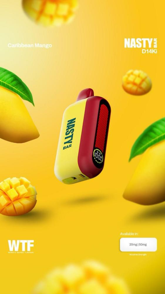 سحبة ناستي 14000 شفطة 50 نيكوتين - Nasty 14000 Puff 50 Nicotine بسعة 20 مل من النكهات اللذيذة وقوة بطارية 680 مللي امبير قابلة لإعادة الشحن.