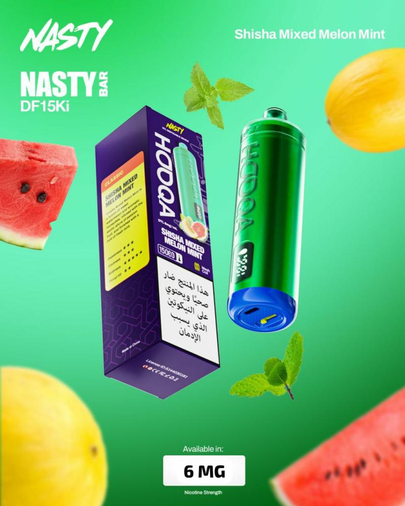شيشة ناستي هوكا 15000 شفطة 6 نيكوتين - Nasty Hooka 15K puff 6 Nicotine بقوة بطارية 750 مللي امبير و نسبة النكهة 22 مل لجلسات ممتعة من الفيب لاتنسى.