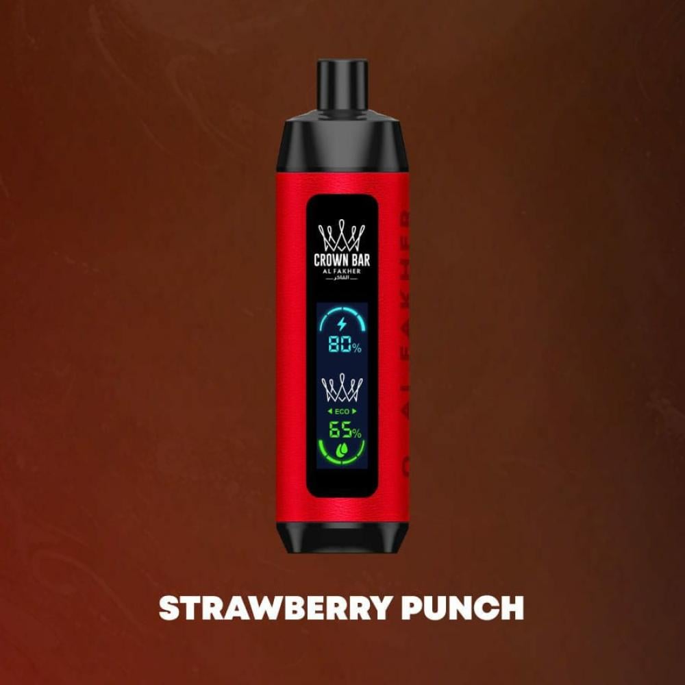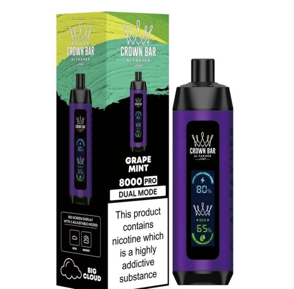 كراون بار برو 8000 شفطة 5 نيكوتين - CrownBar Alfakher 8000 Puff مع بطاري بسعة 800 مللي امبير قابلة لإعادة الشحن ونكهات مميزة.