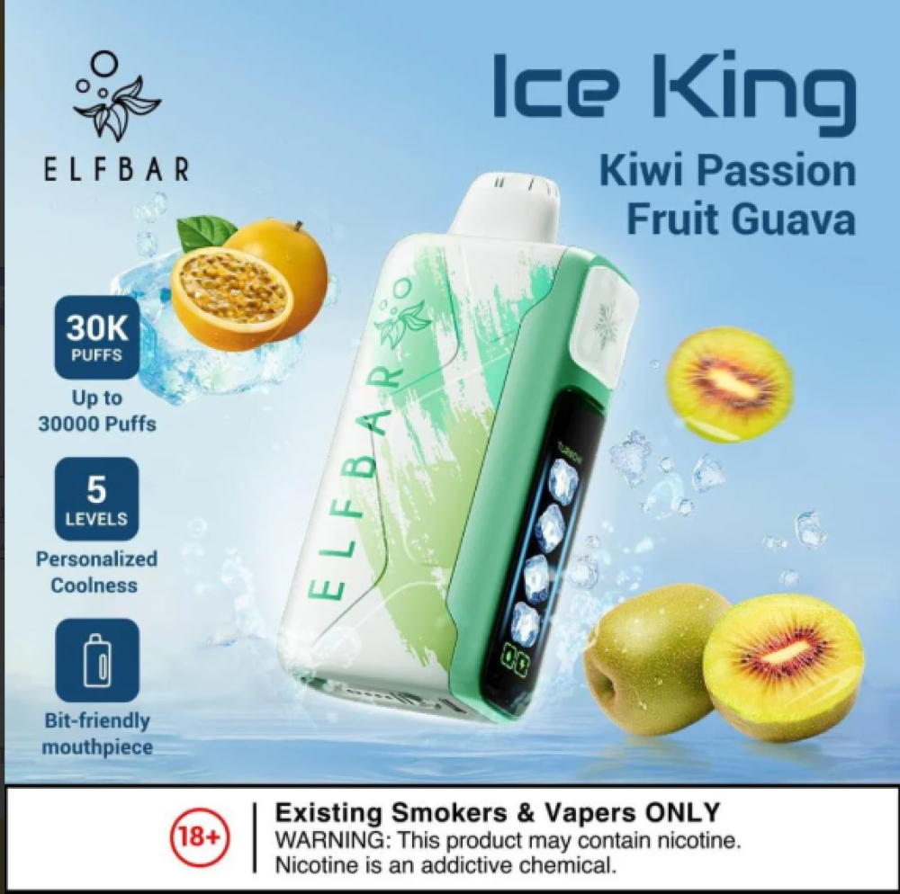 تجربة فريدة لا مثيل لها مع جهاز الف بار آيس كينق - ELFBAR ICE KING المصمم خصيصا ليمنحك أداء متميز ومريح يدوم طويلاً.