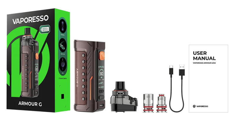 أرمور جي من فابريسو vaporesso armour g جهاز يقدم لك تجربة فيب متكاملة حيث القوة والأناقة تجتمعان في سحبة واحدة، تمتلك سحبة فابريسو ارمور جي العديد من المزايا التي تجعلها مثالية للمبتدئين في عالم الفيب والسحبات مع بطارية 3000 مللي أمبير قابلة للشحن من خلال منفذ تايب سي لتضمن الاتسمتاع بالسحبة طوال الوقت دون انقطاع، بالاضافة الى ذلك تتمتع بود ارمور جي فابريسو vaporesso armour g بالتصميم العصري المريح مع لمسات من الجلد الصناعي الفاخر وشاشة عرض لمراقبة البطارية والسائل وغيرها من المعلومات. يمكنك الحصول عليه الآن بسعر مميز من خلال متجر سموك سايت.