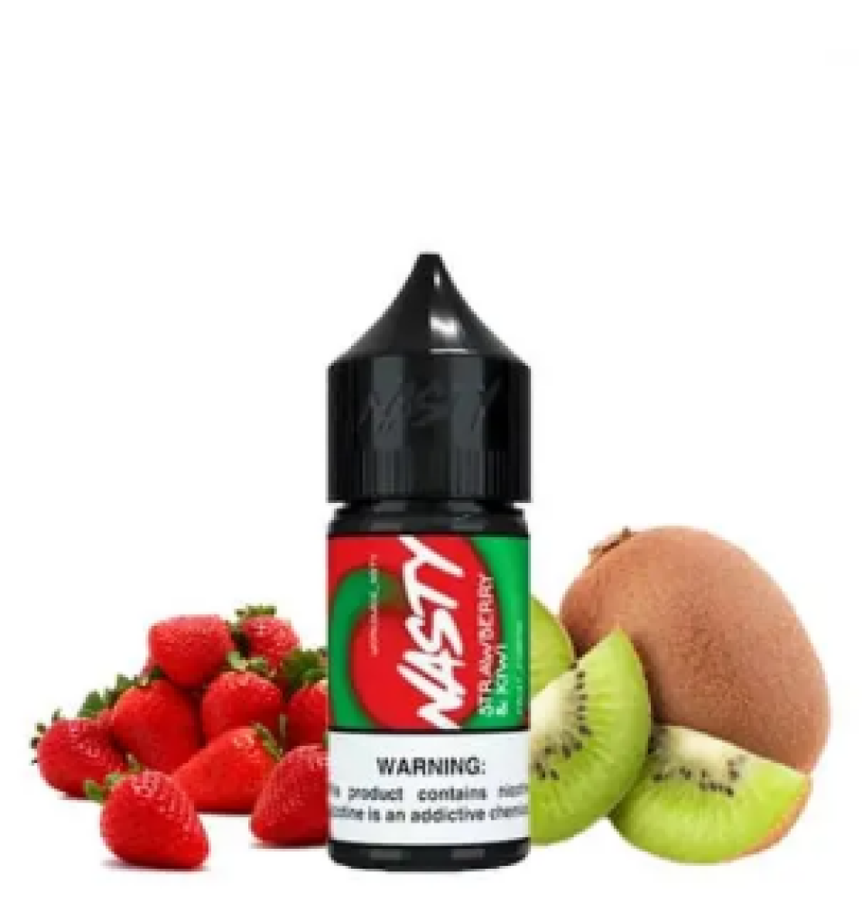 نكهة فراولة كيوي ناستي سولت - Strawberry Kiwi Nasty Vape Salt Nicotine مكس رائع بين حلاوة الفراولة والكيوي الحامض في سائل فيب واحد يمنحك سحبة استثنائية مع سولت نيكوتين لتعزيز النكهة ويجعل تجربة الفيب الخاصة بك مريحة لذا تعتبر مثالية لمستخدمي الفيب لأول مرة كما أنها مناسبة لمن يفضل الحصول على جرعة سريعة من النيكوتين.